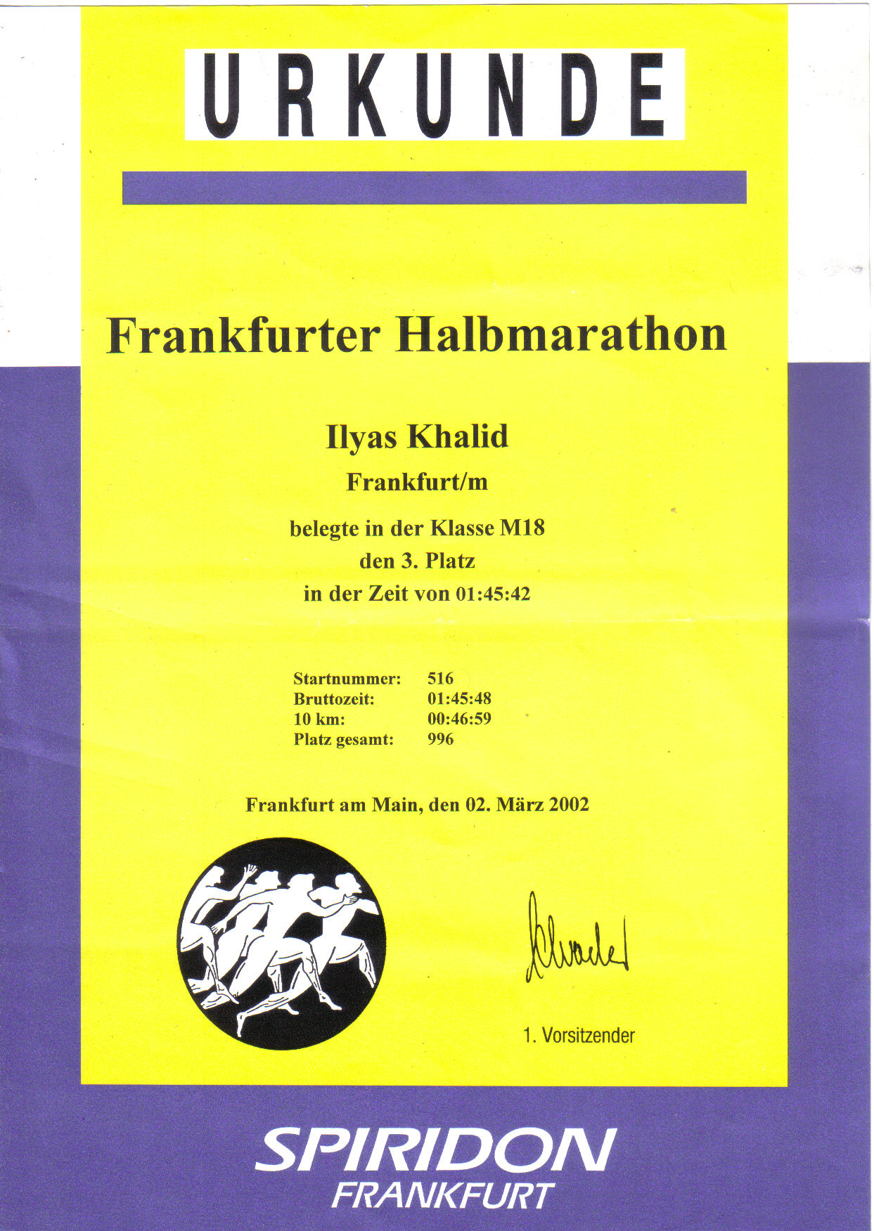 | 02.03.2002 | Halbmarathon 21,0975 Km | Frankfurter Halbmarathon | Frankfurt am Main | Hier |